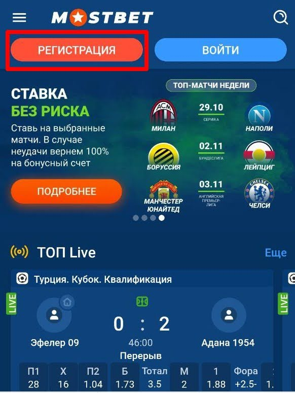 Регистрация в Mostbet